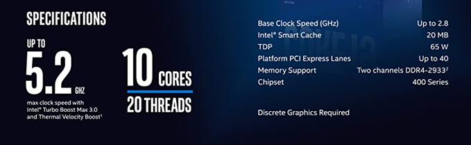 Intel Core i9-10900F Desktop Processor 10 Cores up to 5.2 GHz Without Processor Graphics LGA 1200 (Intel 400 Series chipset) 65W