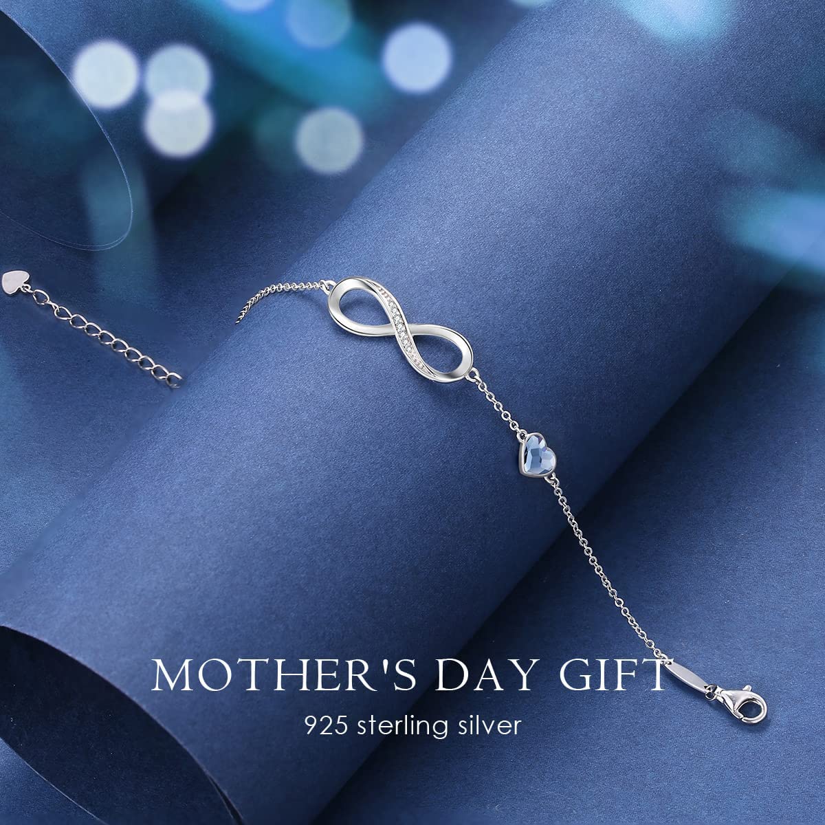 CDE Infinity Heart Symbol Charm Bracelet for Women 925 Sterling Silver Stainless Steel Adjustable Anniversary Mother's Day Jewelry Gift Birthday Gifts for Women Mom Wife Girls Her