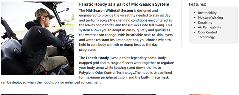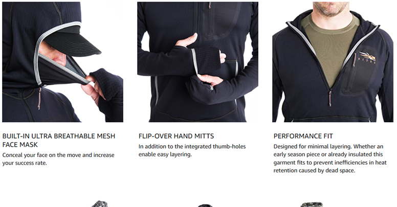 • DROP-TAIL DESIGN - This hunting hoody has a drop tail design which helps keep the weather from crawling up your back while sitting in a blind; it is athletically cut to keep your bowstrings clear and eliminate bulk when used as a mid-layer