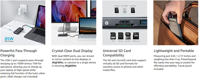 • What You Get: PowerExpand 8-in-1 USB-C PD Media Hub, travel pouch, welcome guide, our worry-free 18-month warranty, and friendly customer service.