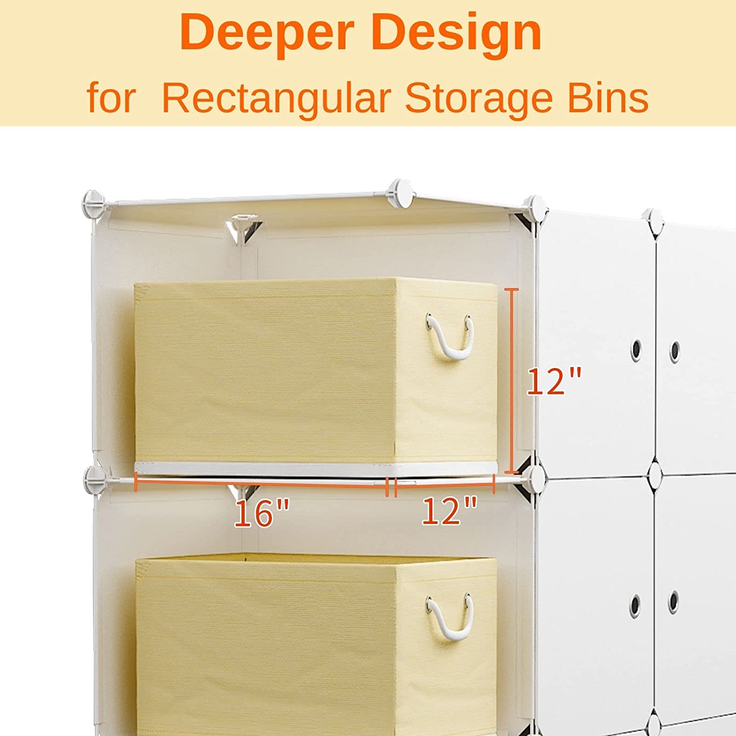 • 【LARGE & MULTI-USE STORAGE】 A total size of 56" x 18" x 56" for this storage shelf. Each storage cube is 14"x18"x14" large, 3x more space than normal cube. Great storage space to store folded clothes, bags, accessories, shoes, toys, yarn and pretty much anything you want!
