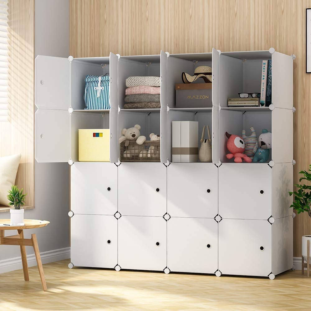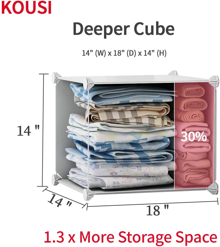 KOUSI Large Cube Storage -14"x18" Depth Cube (16 Cubes) Organizer Shelves Clothes Dresser Closet Storage Organizer Cabinet Shelving Bookshelf Toy Organizer, White, 56"x18"x56"