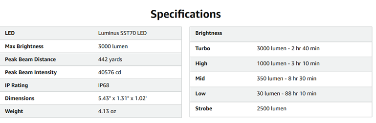 • SUPER BRIGHT FLASHLIGHT - PD40R v2 is capable of a super bright 3000 lumen maximum output that reaches 442 yards in distance, an ideal duty light for professionals like law enforcement, inspection, and security.