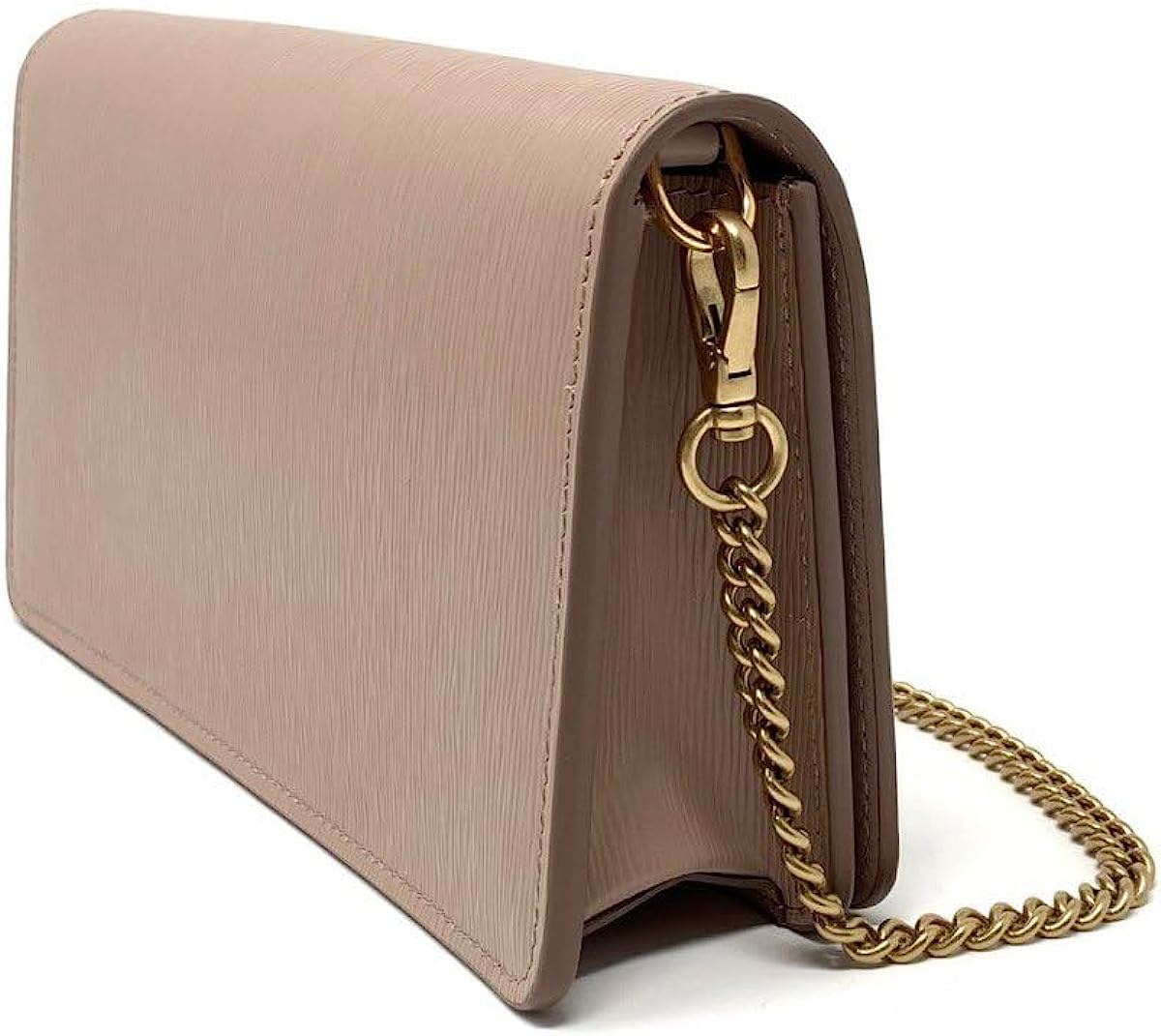 • Color is Cipria Beige. Leather. Miniborse Vitello Move I Crossbody/ Chain wallet. Gold-Tone Hardware. Detachable Strap