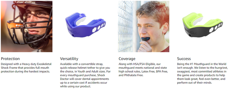 • PROFESSIONAL DENTAL PROTECTION - Heavy duty Exoskeletal Shock Frame provides full mouth protection during the hardest impacts, protects cheek and tongue, teeth grinding, and secures teeth in place