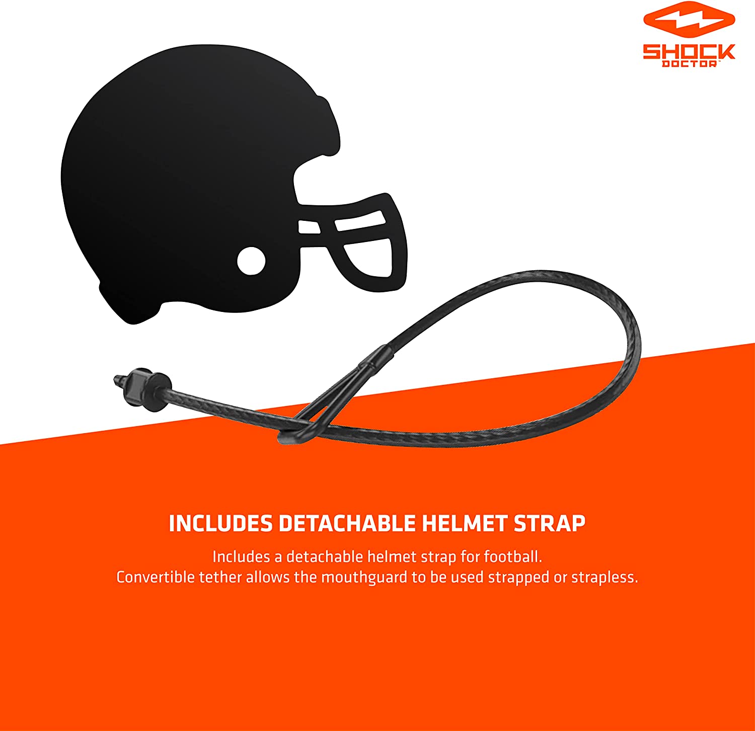 • RECOMMENDED SPORTS - Suitable for all contact sports where a mouth guard is required or recommended including football, wrestling, boxing, and more! Includes a detachable helmet strap for football