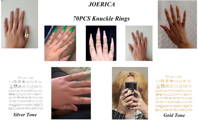 JOERICA 70PCS Knuckle Rings for Women Stackable Joint Midi Finger Ring Set