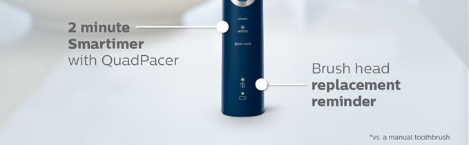 • 2 minute timer with QuadPacer helps ensure Dental Professional recommended brushing time and a consistent clean throughout your mouth