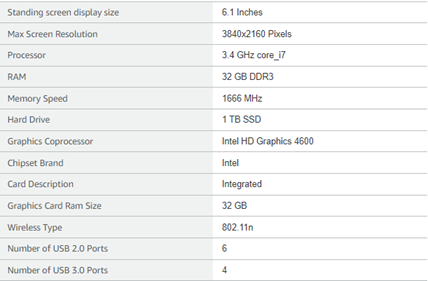 • Visuals are handled by an HD Graphics 4600 (2x Display Port 1x VGA) DisplayPort to HDMI adapter Included