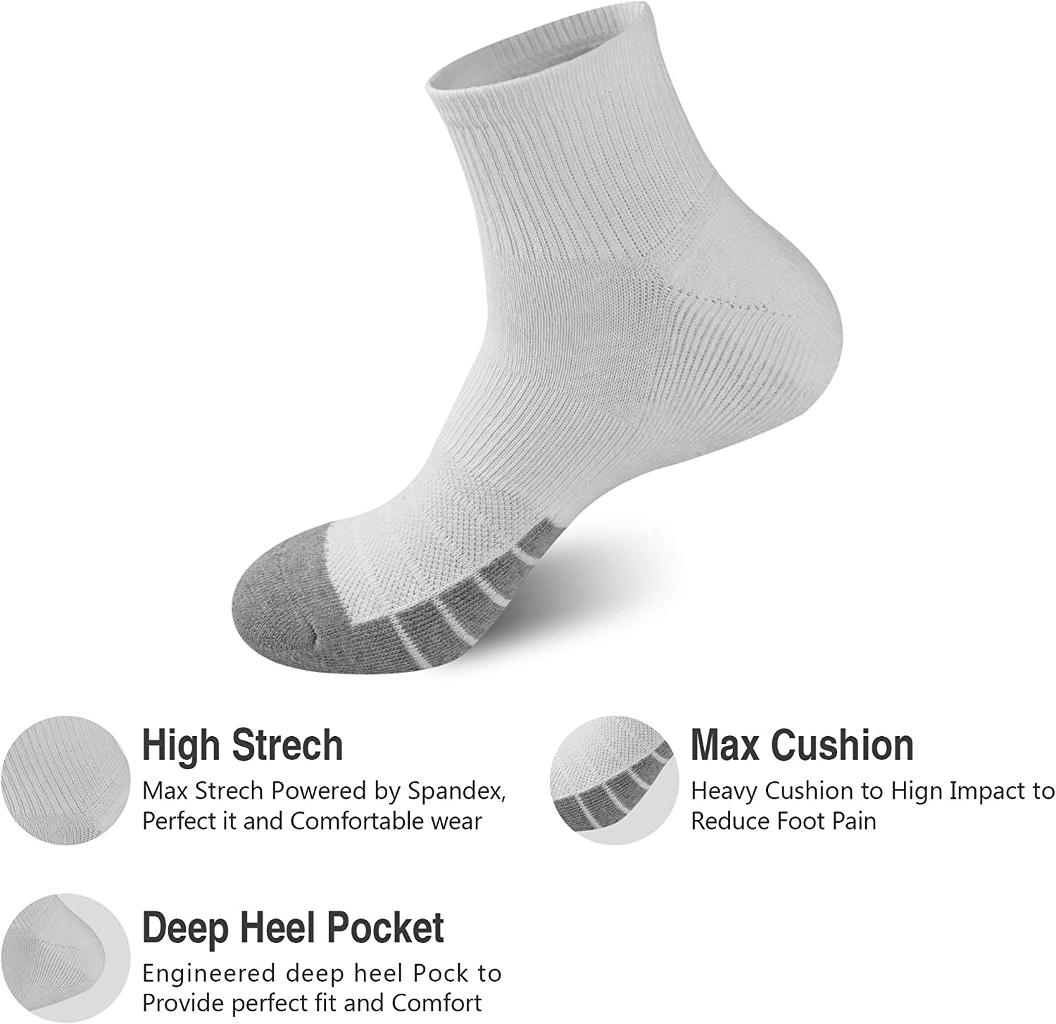These Athletic crew socks thickened design on the soles of the feet and toes, making it more comfortable in life.With moisture wicking material you'll enjoy a secure breathable fit you can wear day after day.these crew socks made with the high-technology fabrics are engineered to provide superior Moisture Wicking Management and the Mesh Construction design on the top of socks creates airflow within the fabrics, which keeps your skin breathable and your feet cool and dry even under the toughest conditions,These socks are great to help you avoid blisters during your heavy duty work.