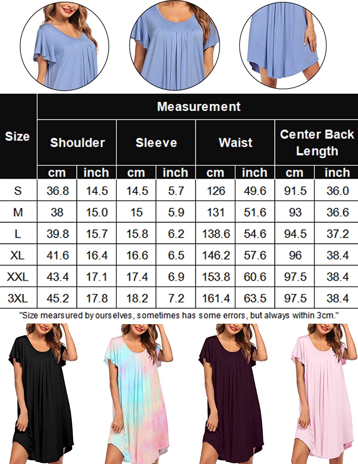 Ekouaer Nightgown Womens Sleepshirt Soft Sleepwear Pleated Nightshirt Comfy Sleep Dress Short Sleeve Flare Nightdress S-3XL