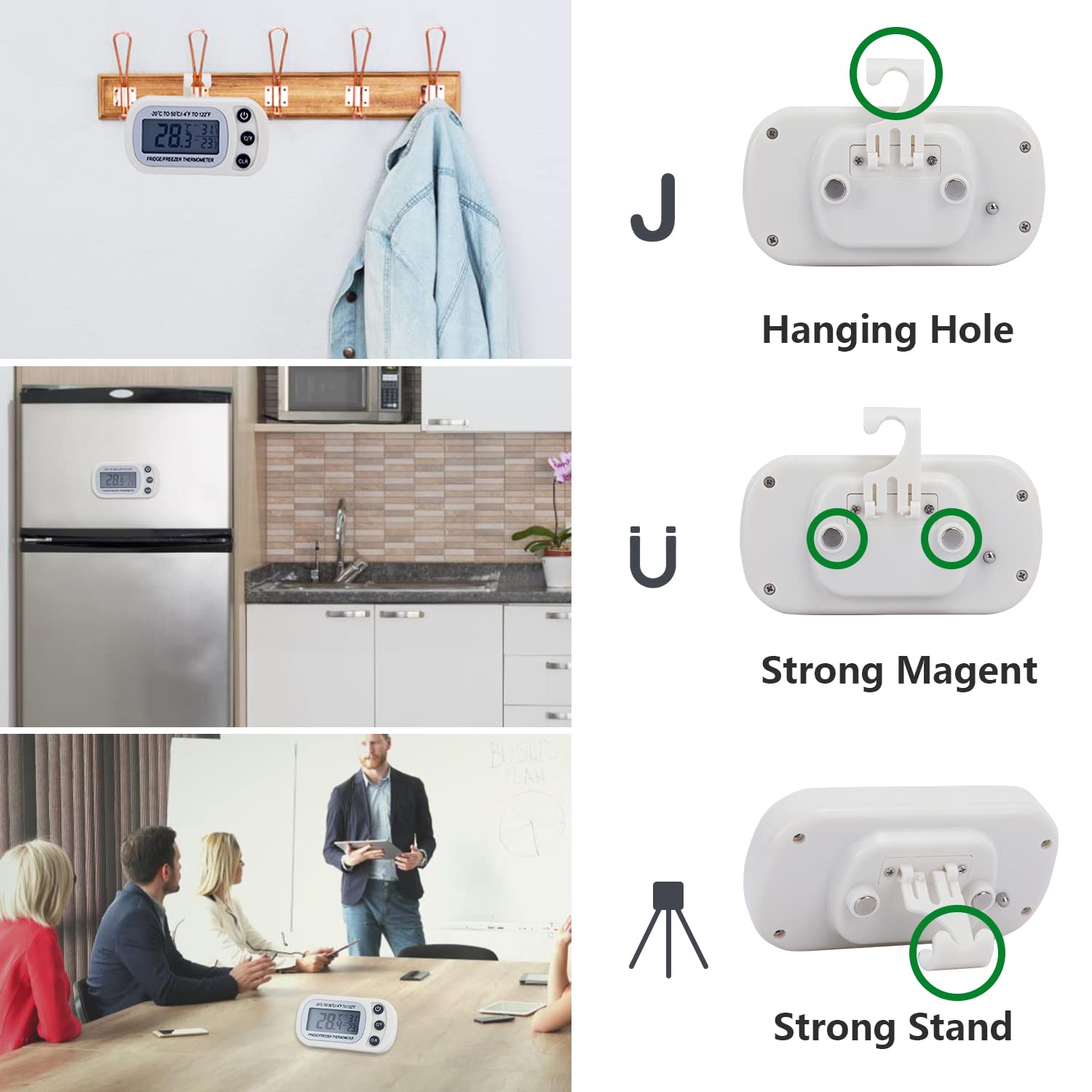 【DURABLE MATERIAL】The fridge thermometer is made of high-quality stainless steel material, stainless steel construction provides strength, durability, not easy to break, long life, easy to clean structure and glass protective lens make it nice for use in the refrigerator and freezer.