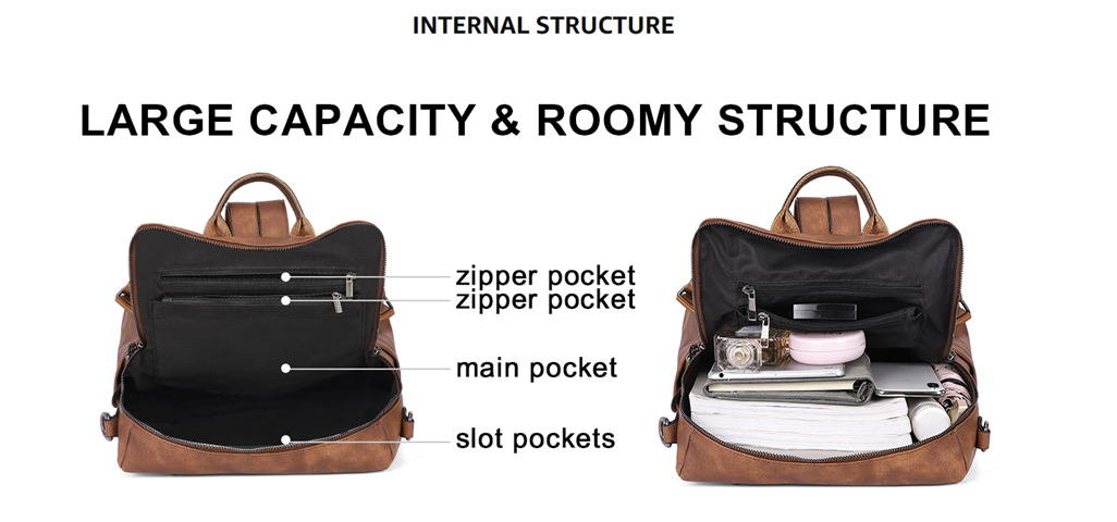 Durable Material: Made of high-quality PU leather with reinforced stitching, gun-tone hardware, soft fabric lining, and durable canvas shoulder straps, double zip design for convenience. Buckle front pocket design as an eye-contacting element, gives you confidence with this leather backpack purse.