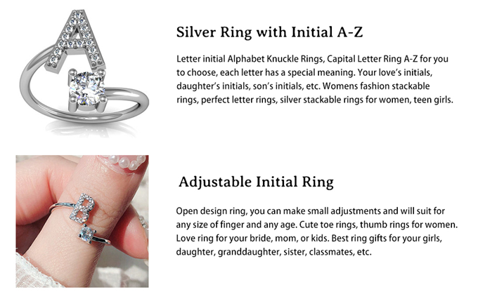 • CUTE INITIAL RING: This initial letter ring was designed with initials A-Z. 26 letters cover everyone's name, each letter has a special meaning for you, your lover's initials, daughter's initials, son's initials, perfect rings for teen girls, teens, daughter, mom, mother, bride, bridesmaid or best friends gifts.