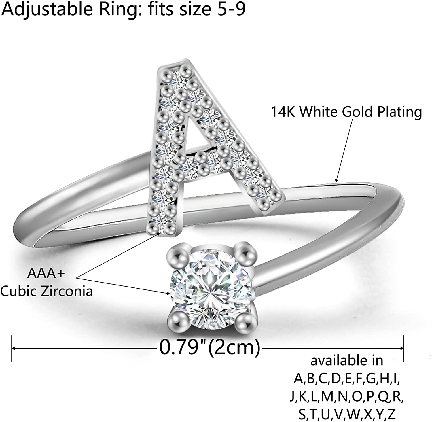 • SILVER RINGS FOR WOMEN: Crystal inlaid copper ring with multilayer plating process. 26 initial 3D wrap ring, choose the Alphabet Ring, which is important for you. your first name,your kid's name, your teens' name, your lover's name, daughter's name, mom's name,etc.