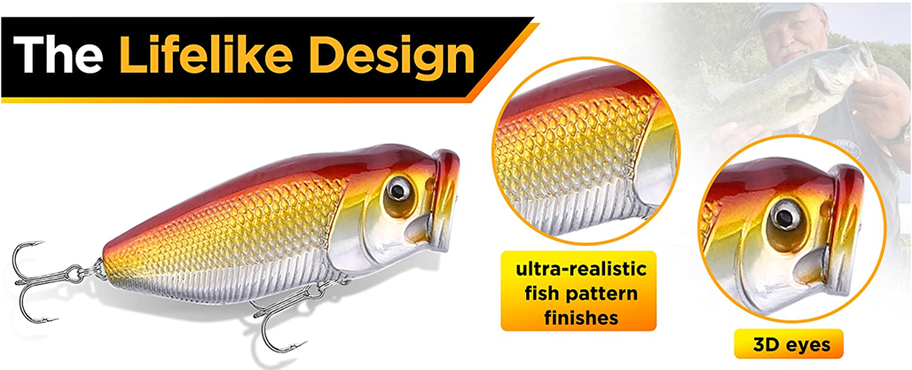 • 【High Quality Material】- The lifelike design minnow, popper, VIB, pencil & crankbait lures are made with 3D Eyes and ultra-realistic fish pattern finishes and even the smartest fish into thinking that the bait is a real fish which helps you to get fish easier. All lures are widely used and carefully selected, which are made of high-quality anti-corrosion stainless steel and plastic, strong and durable.