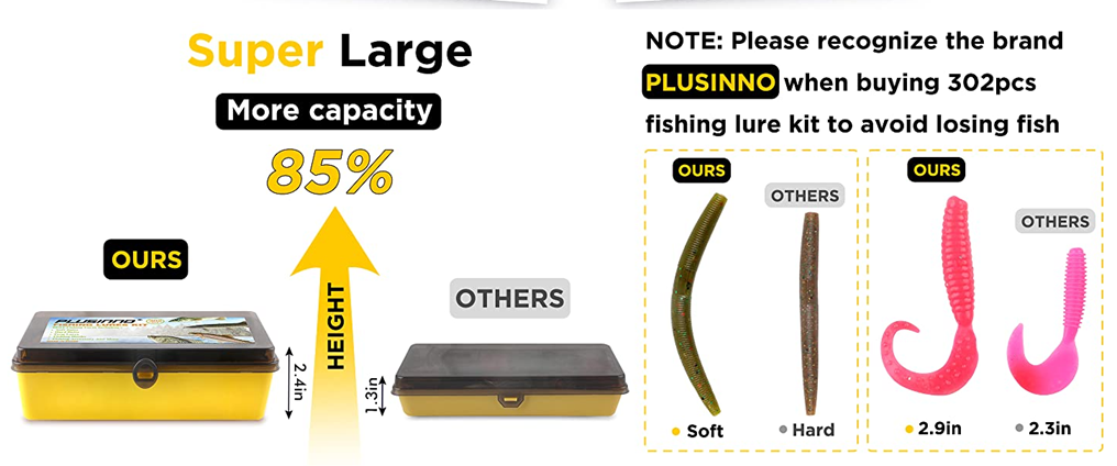 • 【Premium Fishing Tackle Kit】- PLUSINNO high-quality fishing lures gives beginner or expert anglers plenty of options to land virtually any type of fish, from bass to trout. 302 pieces fishing kits collects nearly all accessories including Popper/ Pencil/ Minnow/ Crankbait/ VIB/ Frog/ Spinner/ Spoon/ Plastic Worms/ Tube/ Split Tail Fishes / Off Set Hooks/ Jig Head/ Tube Jigs/ Fishing Weights sinkers/ Beads/ Swivels/Fishing Snaps and Tackle Box, suitable for all sorts of fishing condition.