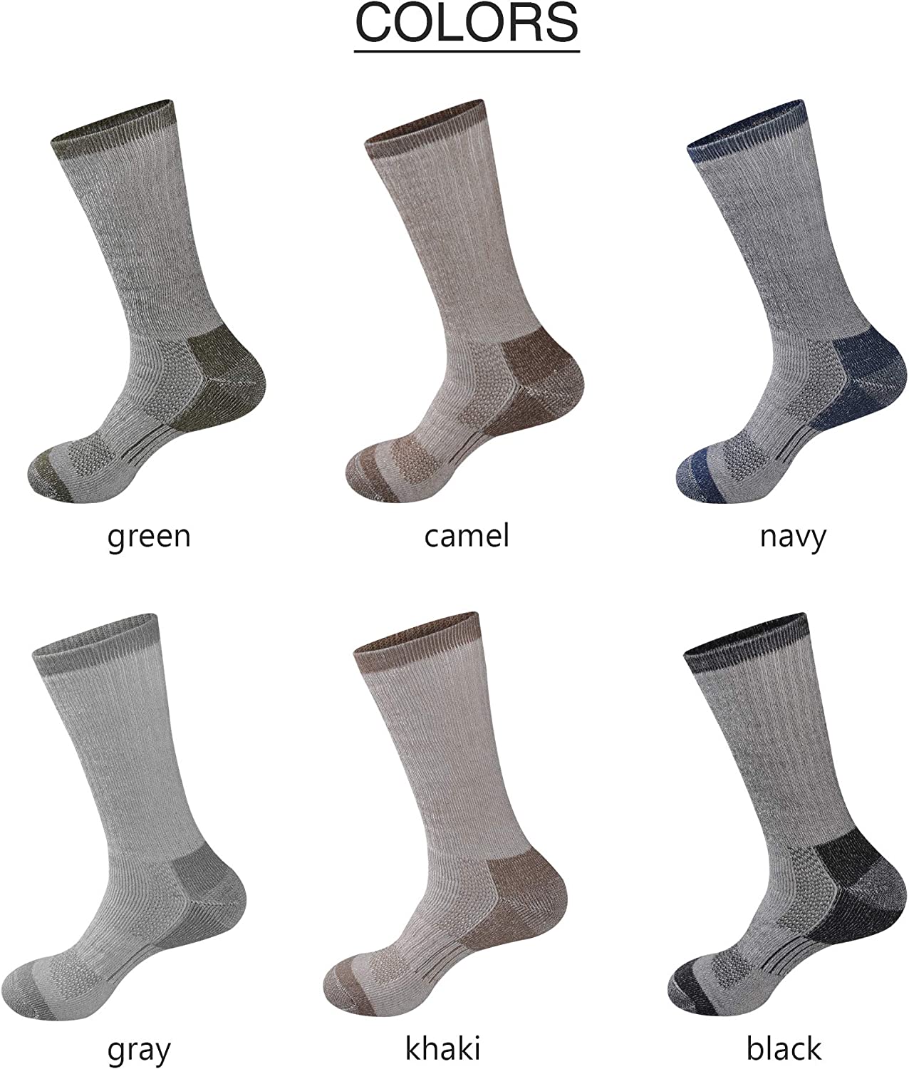 Merino Wool is a natural moisture management fiber that wicks moisture and Super soft to provides natural comfort for all seasons.Each pair is cushioned throughout and reinforced from heel to toe for maximum comfort and durability. These wool cushion crew socks designed for extreme weather conditions, great cold weather gear for outdoor activities and sports like skiing.