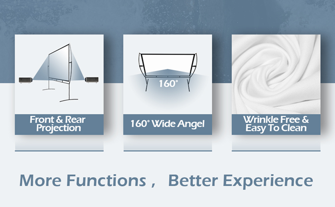 - 16:9 aspect ratio, with 160 degree wide viewing angle,this movie screen is designed for providing sharp andhigh-resolution images.