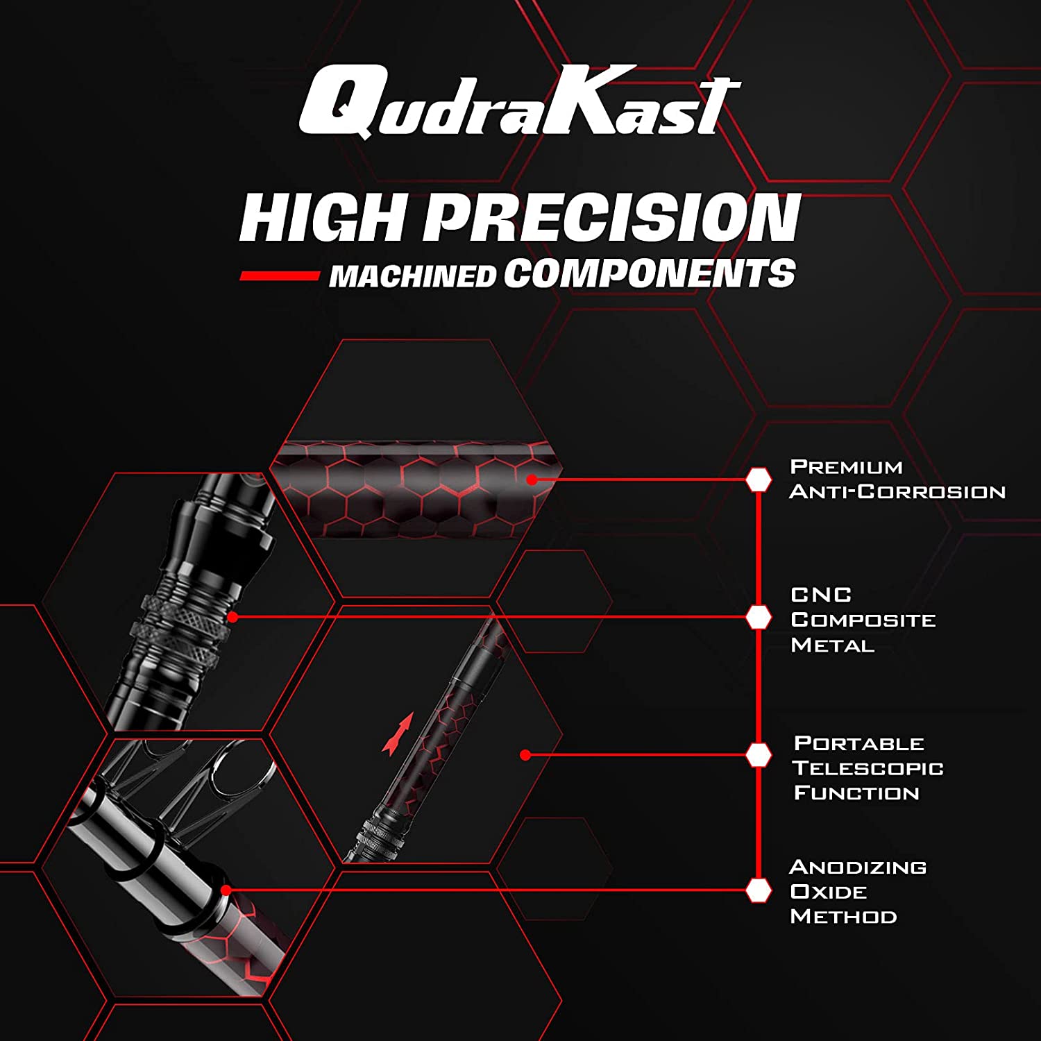 QudraKast Fishing Rod and Reel Combos, Unique Design with X-Warping Painting, Carbon Fiber Telescopic Fishing Rod, Best Gift for Fishing Beginner and Angler