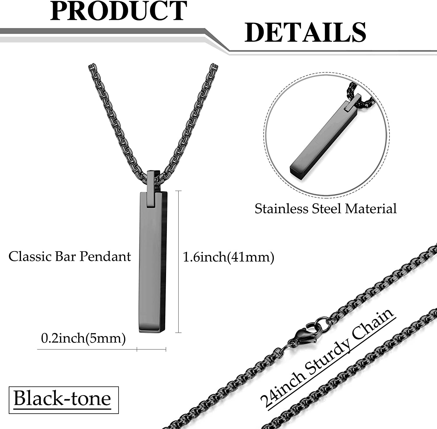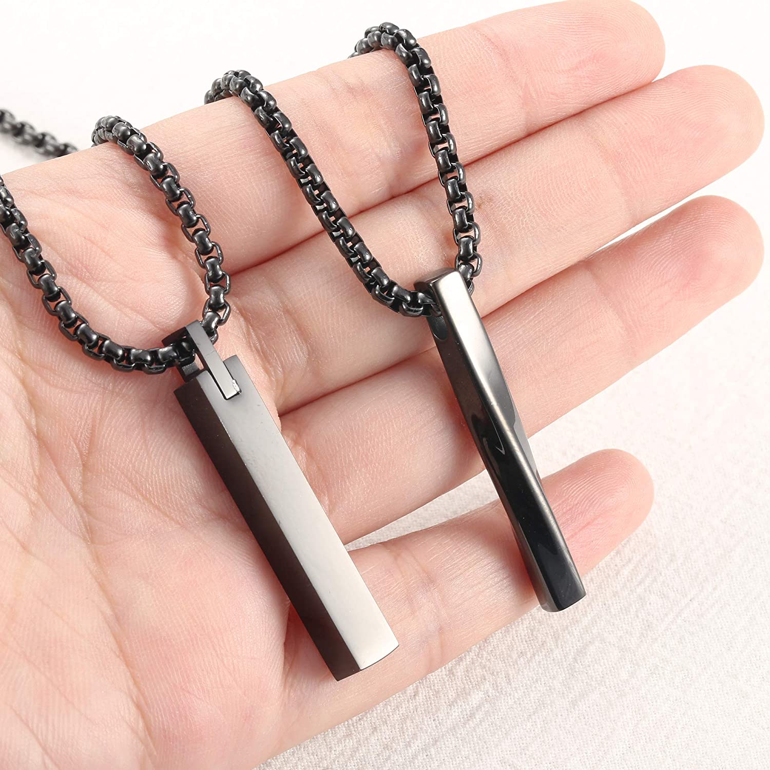 • PRODUCT SIZE--Thick Bar Pendants Size: length: 40mm,width: 5.8mm,thick:5.8mm; Twisted Cube Bar Pendant Size: length: 40mm,width: 3.6mm,thick:4.6mm;All Come with a 3mm 24 inch chain. Perfect size for men and women