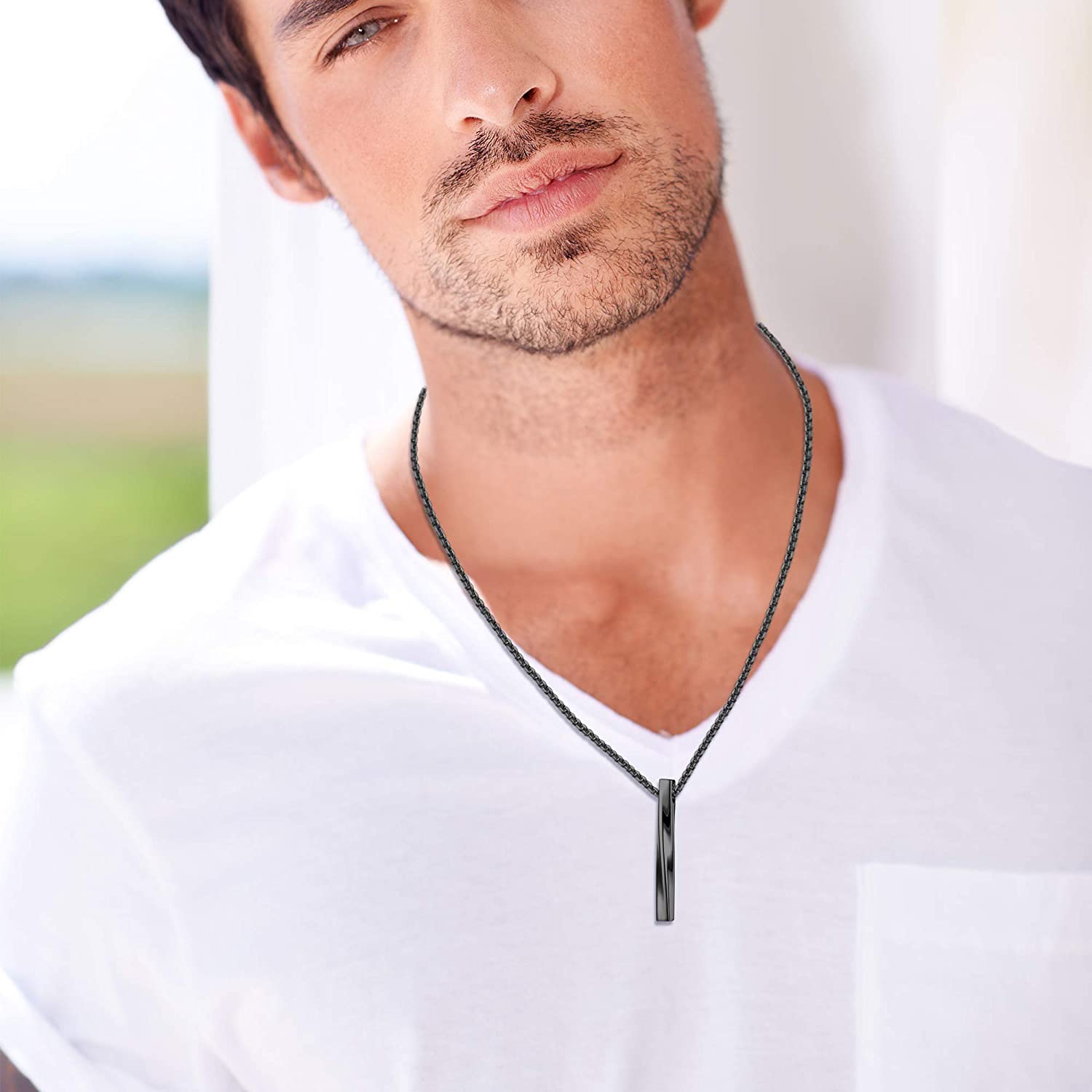 • DESIGN & GIFT READY--Black Twisted Cube Bar Pendant Necklace for Men and Boys, Stylish and Shiny, Less but Better.Perfect weight and comfortable to use, daily wearing necklace.Great Gift for Birthday, Graduation, Aniversary, Christmas, Valentine's Day, etc...