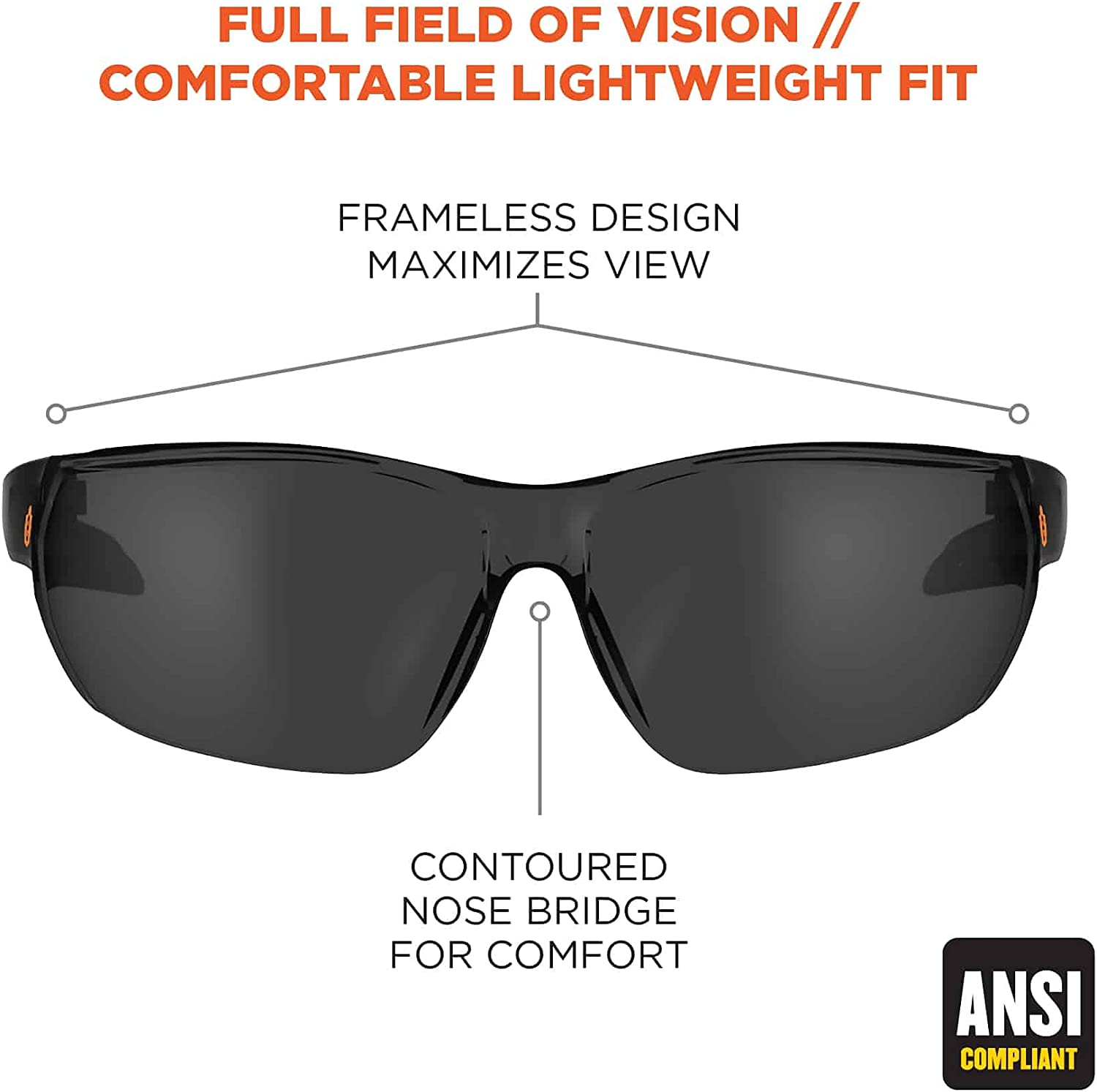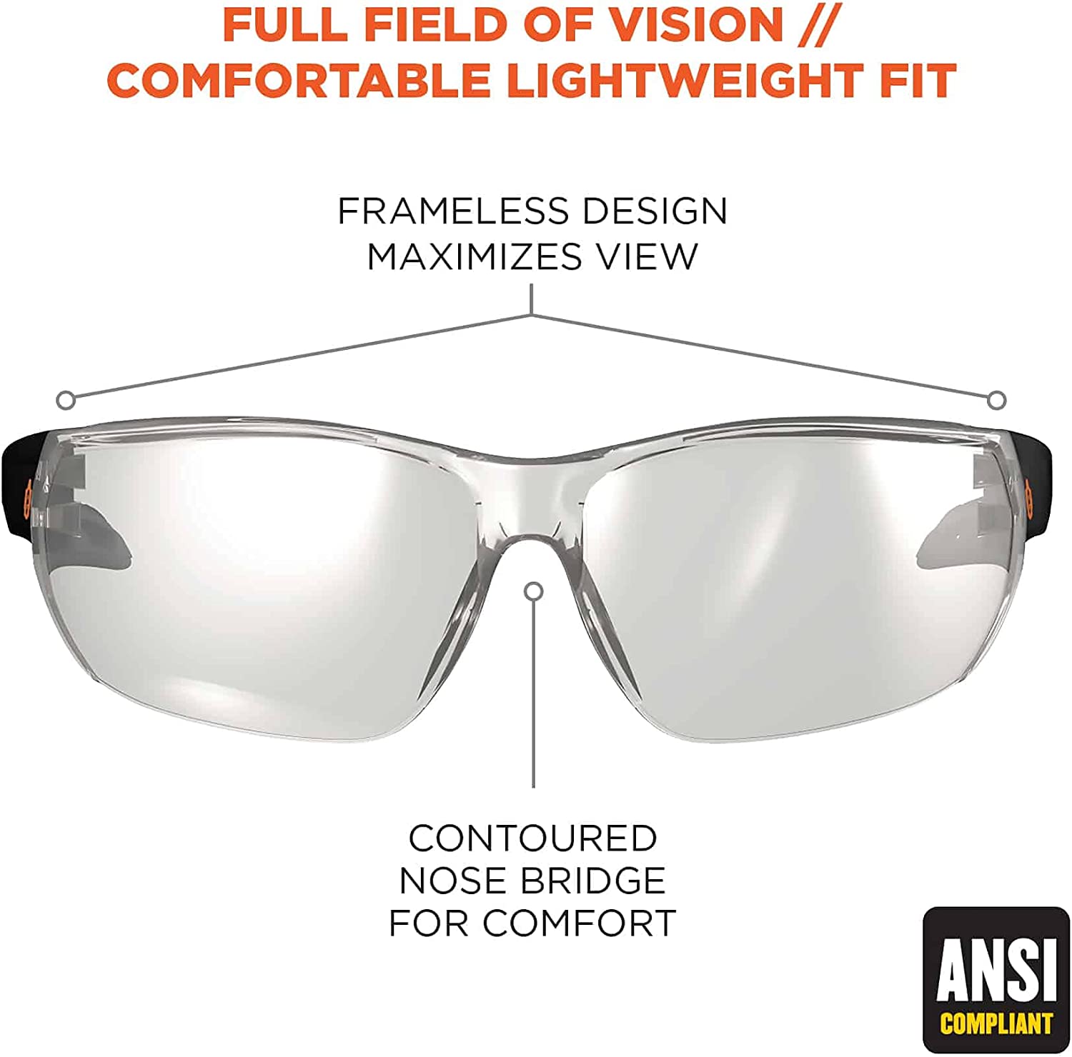 FULL FIELD OF VISION – Rimless design maximizes field of vision