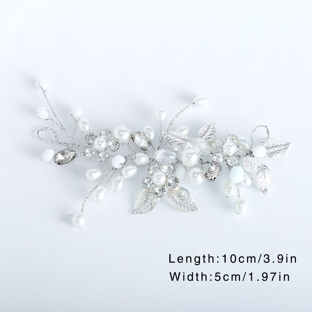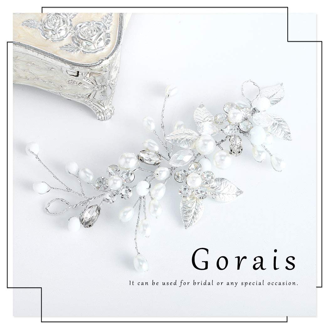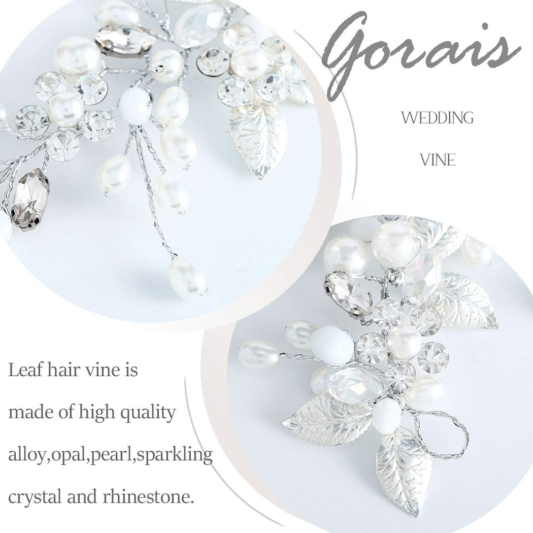 Gorais Bride Wedding Hair Vine Silver Pearl Bridal Headpieces Leaf Hair Accessories for Women and Girls (a-silver)