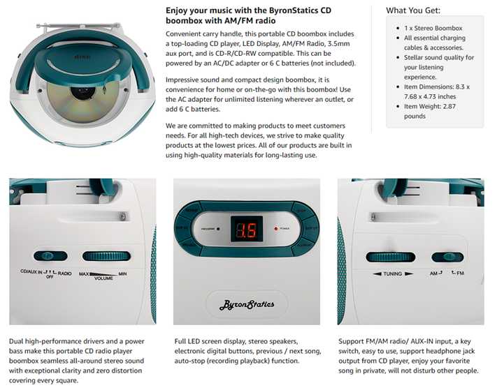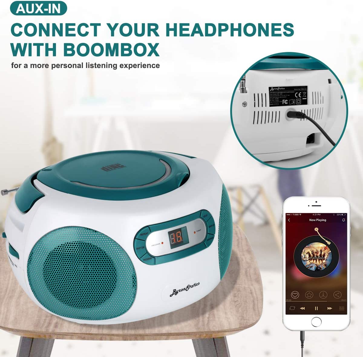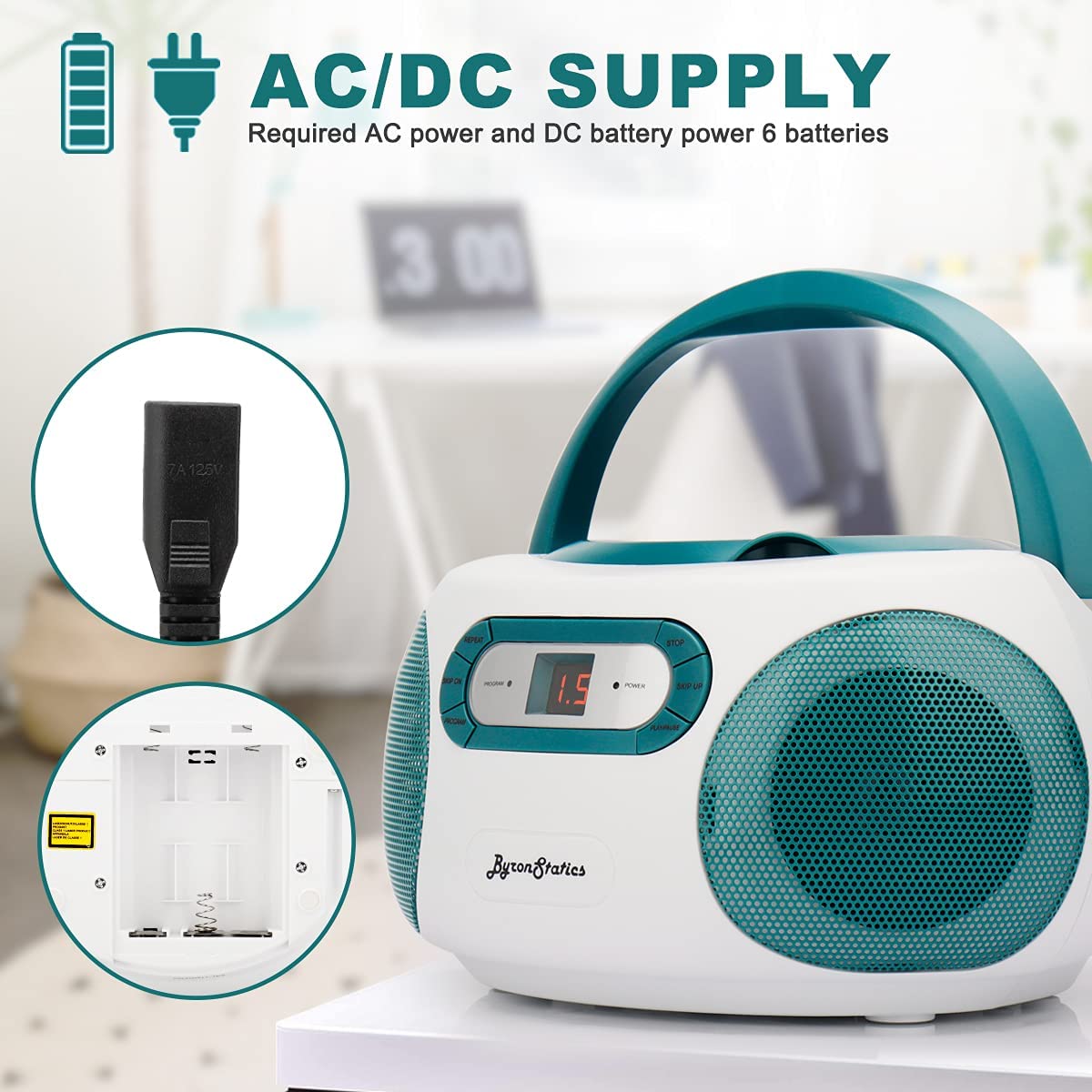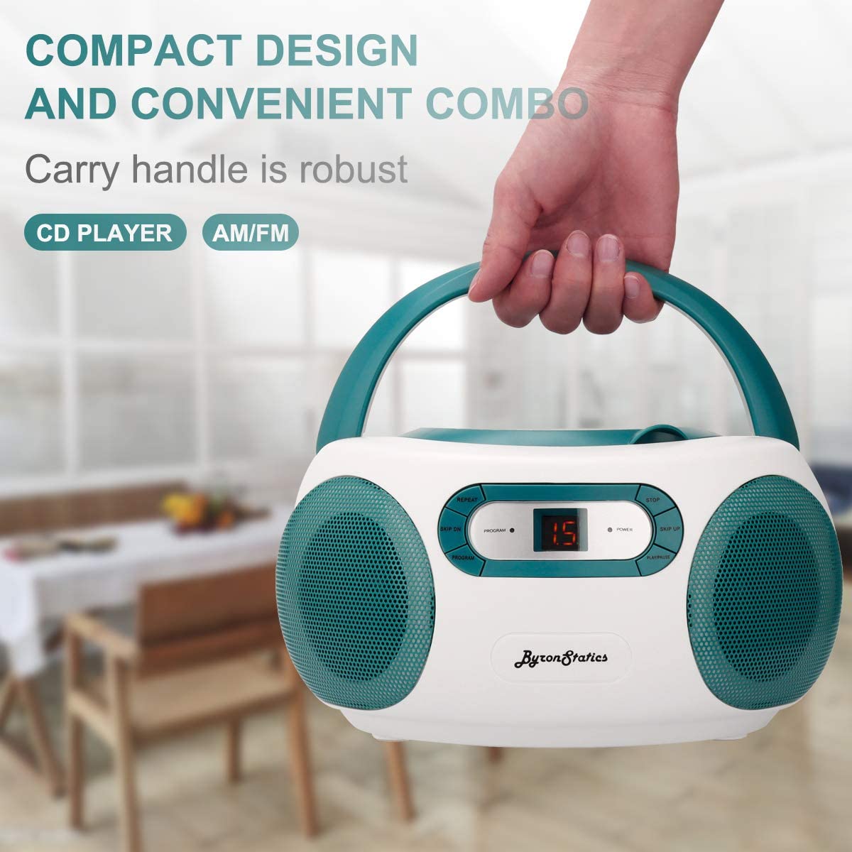 Byron Statics Portable CD Boombox with AM/FM Radio, Top Loading CD, 1W RMS x 2 Stereo Speaker, Aux-in Jack, LCD Display, AC110-120V Operated (KBB-250)