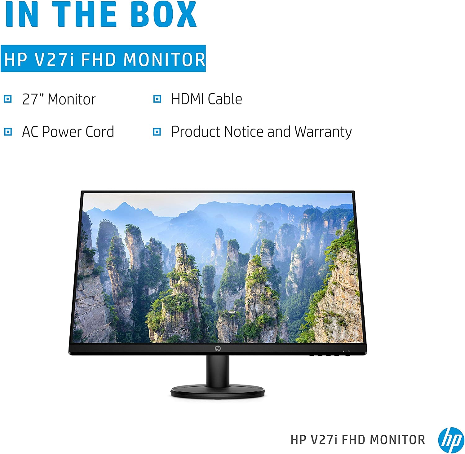 HP V27i FHD Monitor | 27-inch Diagonal Full HD Computer Monitor with IPS Panel and 3-Sided Micro Edge Design | Low Blue Light Screen with HDMI and VGA Ports | (9SV92AA#ABA) Black