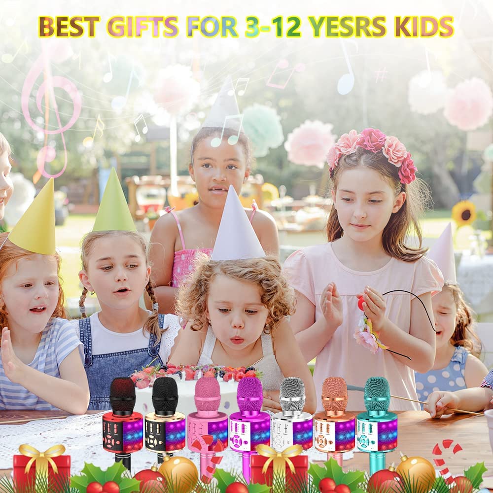 【All-in-One Karaoke Microphone Toy】Portable hand-held microphones can be used as microphone, karaoke machine, high quality speaker, voice changer, singing recorder. A convenient, multi-functional microphone toy that can bring kids fun anywhere, anytime.
