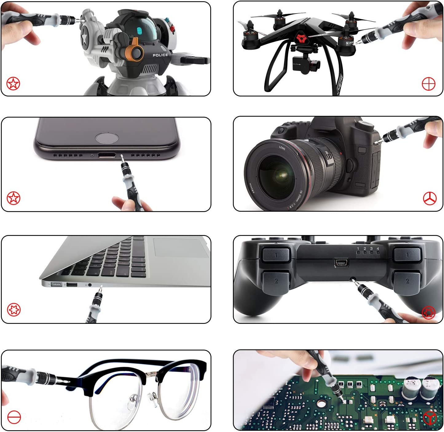 • 【Home and Workshop Must Have】Everyone have an ambition to the DIY computer or circuit board to let them run better or to repair broken electronics and belongings by self. Such as DIY game computer hardware to play games more smoothly, exchanging an iPhone broken screen, or clean the TV mainboard. This mini screwdriver set includes all the screwdriver bits and essential tools we daily need. It is a great gift for father, son, husband, and friend, the item has 12 months warranty.