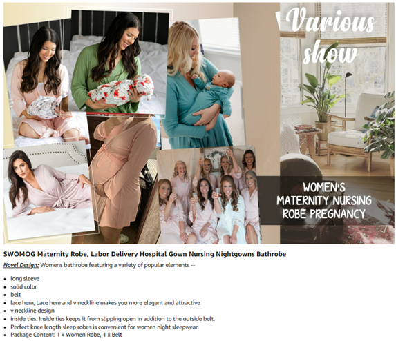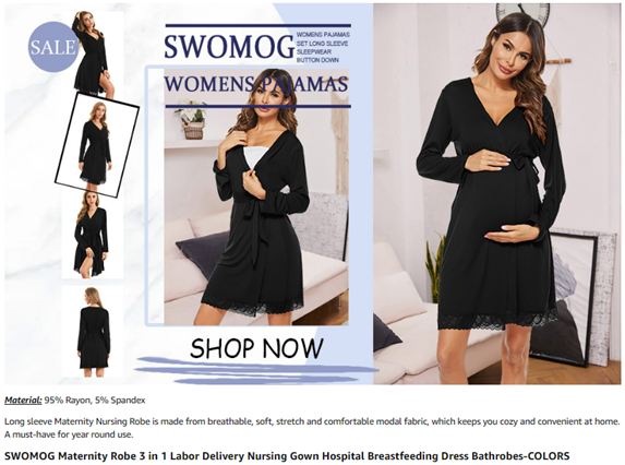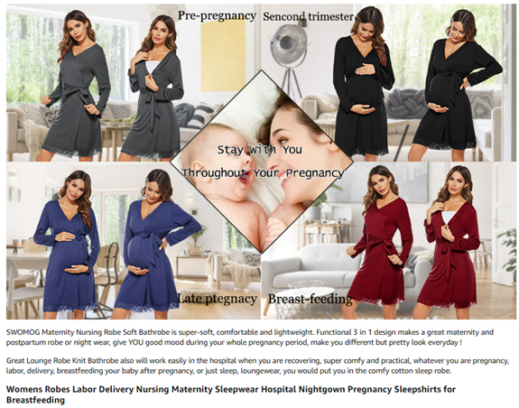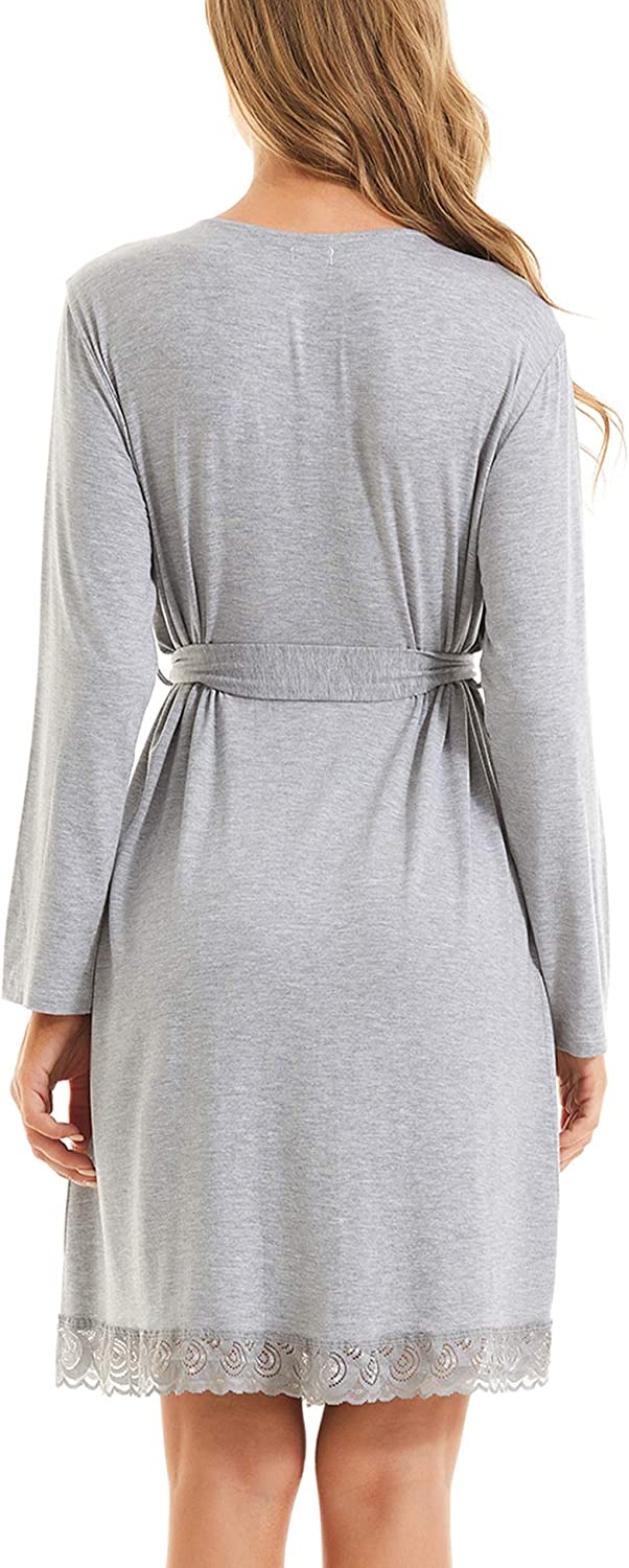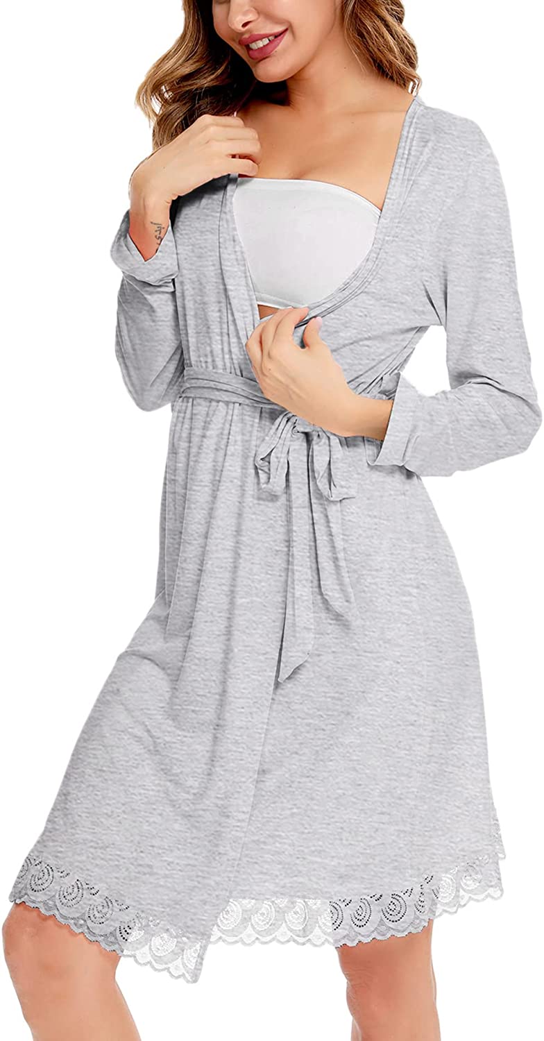 SWOMOG Women's Maternity Nursing Robe Pregnancy Hospital Breastfeeding Bathrobes 3 in 1 Labor Delivery Nightgowns