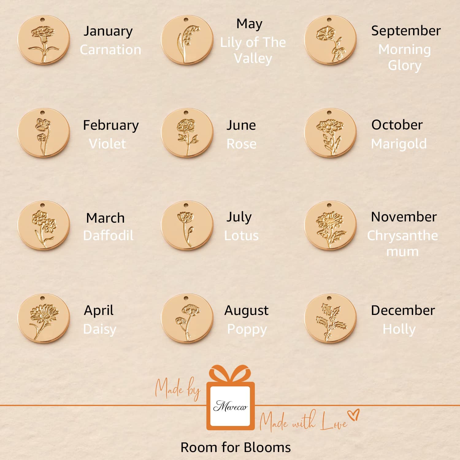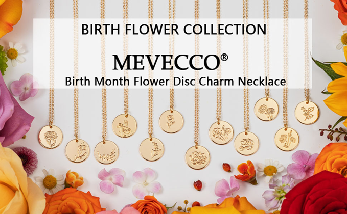 Mevecco Birth Flower Necklace 18k Gold Engraved Custom Floral Pendant Necklaces