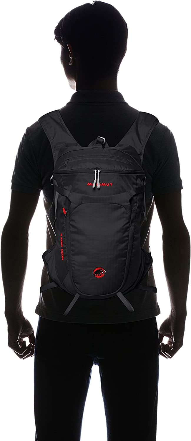 Mammut's Neon Speed is the perfect backpack for demanding climbing tours. In addition to its specific features, it makes use of the well-known CONTACT Basefit suspension system from the MTR series. This ensures that the Neon Speed sits perfectly on your back during even the most difficult climbing holds, thus allowing you to concentrate fully on your next move. Additional Information: - 210D Nylon Triple Ripstop - VENtech: Breathable, quick-drying materials - RV volume expansion on the front - 2 material carrying loops on shoulder straps - Rope fixation on the cover - Can be packed small in the zippered outer pocket Type: daypack Material Backpack: 100% Nylon Equipment Mounting options for equipment: Ski/snowboard attachment Dimensions Dimensions in cm (H x B x D): 43 x 23 x 9 cm Weight Backpack weight: 410 g Backpack Application: Climbing Build: Padded back Version / Back length: Normal Volume Large Category: 15 - 30 l l Backpack Volume: 15 l Strap Chest Strap Waist Strap Features Characteristics: Stick attachment