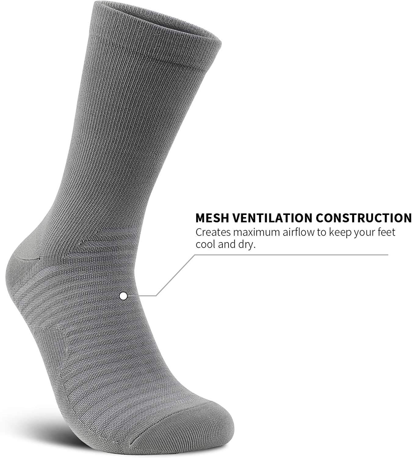 • [MOISTURE-WICKING MANAGEMENT] Our compression socks are made of comfortable breathable material with lightweight design. Mesh ventilation construction creates maximum airflow to keep your feet cool and dry. The fabric also helps keep your feet cool by sucking up all the sweat and moisture produced by your feet