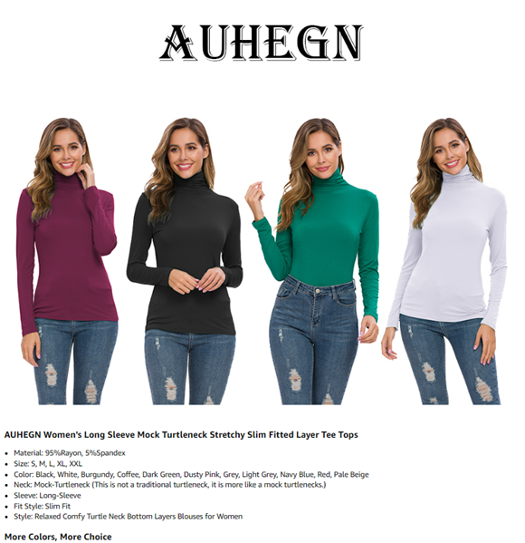 AUHEGN Women's Long Sleeve Lightweight Turtleneck Top Pullover Casual Active Layer Tops Shirts