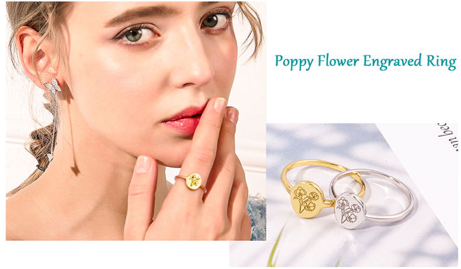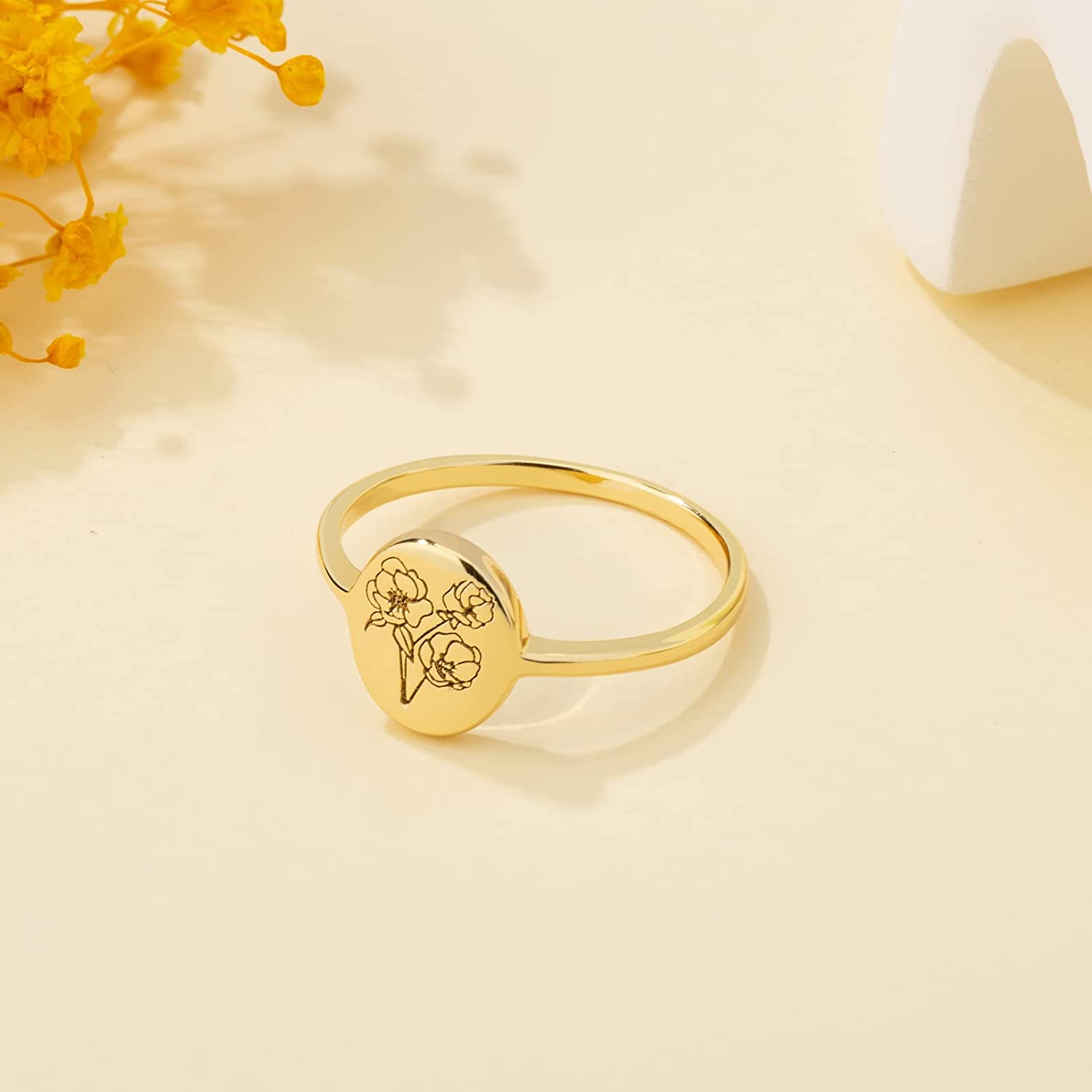 YeGieonr Handmade Flower Signet Ring,18K Gold Ring for Women, Minimalistic Statement Ring with Botanical Engraved Delicate Personalized Jewelry Gift for Women/Girls