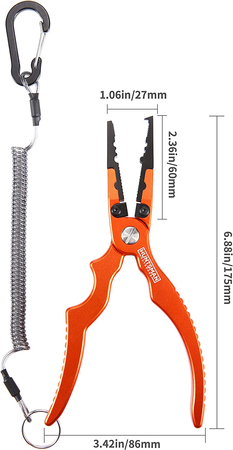 Huntsman Outdoors 7 inch Fishing Pliers - Fishing Gear for Split Ring, Fish Hook Remover & Line Cutter