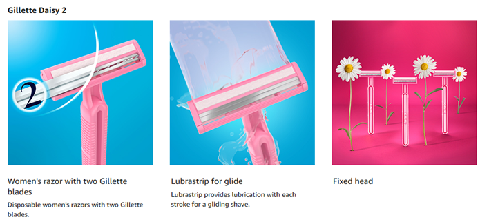 Daisy Classic disposable razors for women have comfort blades, a moisture-smooth strip, and comfort handle to give you a close shave. These razors can also be used as a dermaplaning tool for hair removal. Gillette comfort razor blades are thin to glide effortlessly for a smooth shave and the comfort handle is designed for a secure grip. Contains 5 Daisy Classic disposable razors for women.