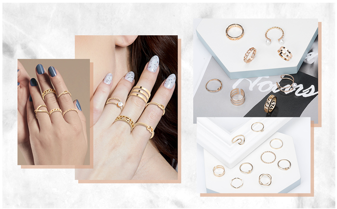 • ?SIZE - Gold fashion rings set for women are in different sizes, from 0.59 in to 0.74 in, you can choose different sizes to wear on different fingers. Finger rings for teen girls are arbitrarily matched to show your personality.
