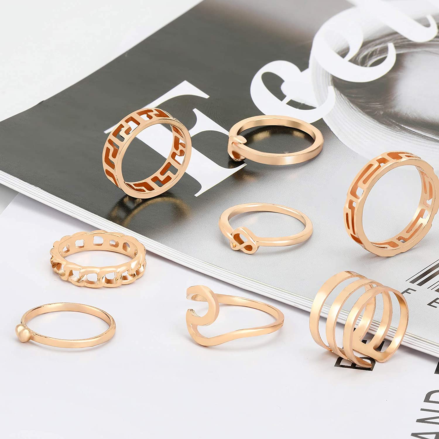 The gold joint midi finger rings set is a great fashion ring jewelry accessory. These different rings are sized to fit your full finger size. From middle finger, thumb finger, ring finger, index finger to little finger.