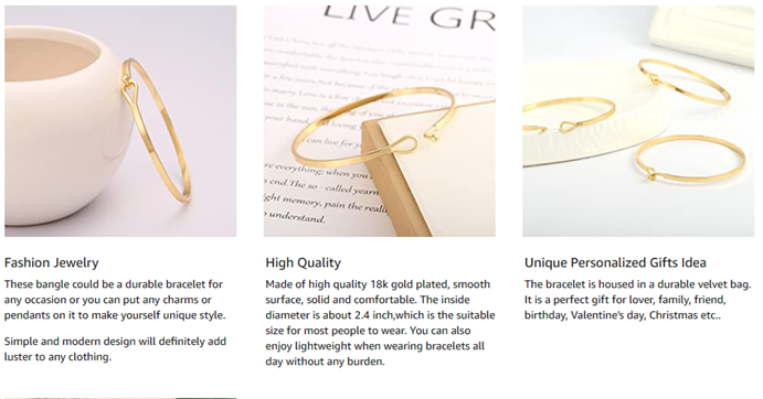 • Skinny bracelet diameter: 2.4 inches. The petite size 18K gold bangle has an oval design with smooth edges, which is safe for you. The dainty bangle has a hook and catch closure making it both comfortable and easy to put on and take off. Delicate yet durable; dainty yet strong; works for all ages.
