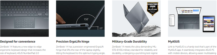 • MIL-STD 810G military standard for reliability and durability.ASUS AI Noise-Canceling Technology employs machine learning to isolate unwanted noise from human speech, which ensures the best communications experience