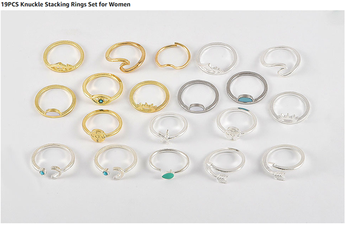 - Retro Stackable Rings: You will get 19 pcs knuckle rings with a combination of various styles such, Multiple ways of stacking makes you unique every day.We have wave rings,rhinestone ring,turquoise rings,starfish ring, peak ring,arrow ring,moon ring,sea ring,compass ring,vintage rings,etc.You can wear different rings every day according to your mood.