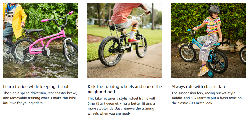 • SmartStart Technology, this bike is designed just for kids: lighter frame, cranks and pedals are positioned forward, gearing designed for easier starting, narrower pedal positions, and smaller grips and seat.