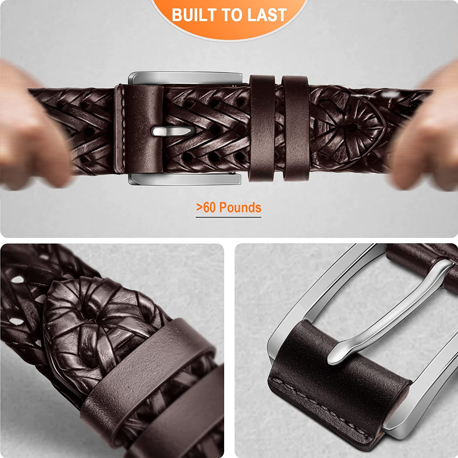 - Woven Braided Belt of Genuine Leather,Unisex for Men or Women,Width 1 3/8";