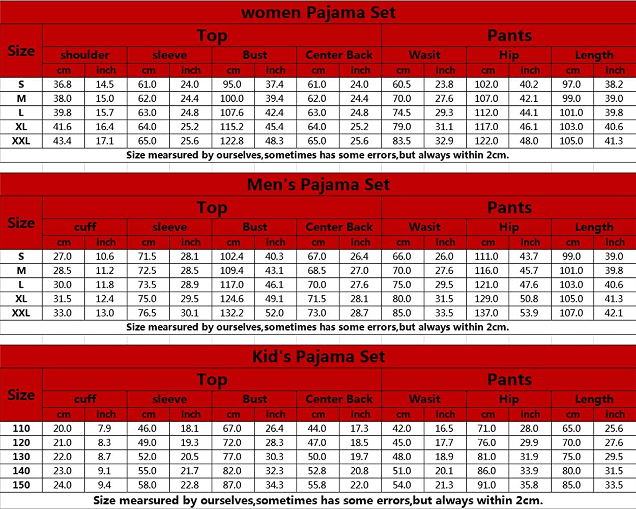 Multi-colors and size for choice, you can always find the most suitable one. Each set of this family pajamas is sold individually and the kid’s set is a unisex fit, please refer to our Size Chart in the up product picture before ordering. Merry Christmas!