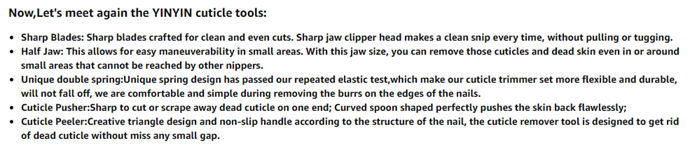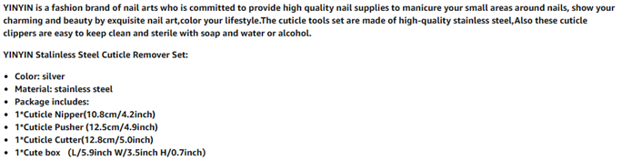 • 【Premium Polished Stainless Steel】Our newly upgraded nail cuticle trimmer with cuticle pusher and cutter are made of 100% high quality stainless steel,YINYIN professional 3 in 1 cuticle remover tool are premium metal cuticle set and retain sharpness for a very long period of time.