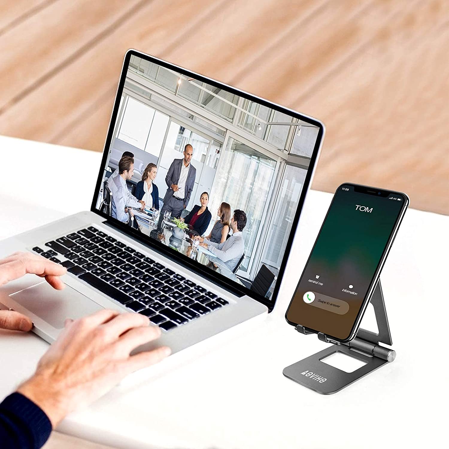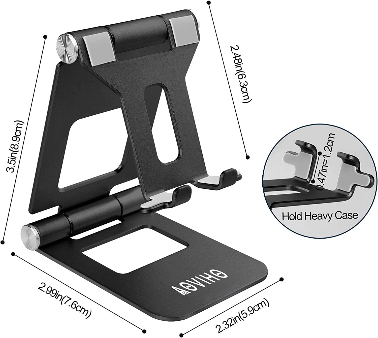 Aoviho Adjustable Cell Phone Stand Holder Fully Portable Phone Holder - Small Aluminum Desktop Stand for iPhone 12 Pro Mini 11 X XR XS Max 8 7 6 Plus (Black)